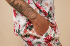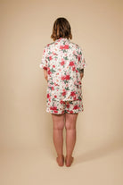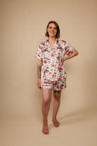 Treat yourself to the ultimate in holiday comfort with our Christmas silk pyjamas. Made from our ultra soft 5 star fabric, these pyjamas are as cozy as they are stylish. With a fun, festive design featuring classic holiday motifs like snowflakes, bells, and Christmas trees, they bring a little extra cheer to your summer nights. The set includes a button-up top with a classic collar, piping, branded buttons and comfy drawstring waist band, so you can relax in style. Whether you're lounging by the bbq or getting cozy for a night of movie marathons, these Christmas silk pyjamas are the perfect way to add some holiday magic to your evenings. They also make a great gift for anyone who loves a little luxury and holiday spirit rolled into one.